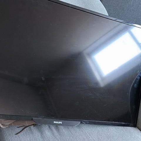 32 tommer Philips TV ældre model, står oven på en drejefod med glasplade. Fungere fint. Følger ikke nogen ledninger eller fjernbetjening til.