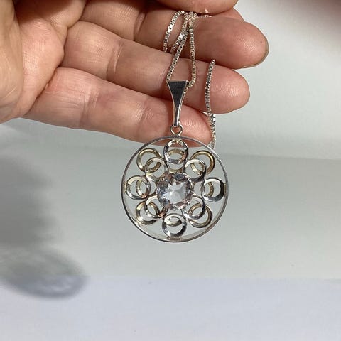 Vedhæng uden kæde. I 14 karats guld med fersken farven månesten. Unika smykke. Kvittering haves nypris 2500 kr.