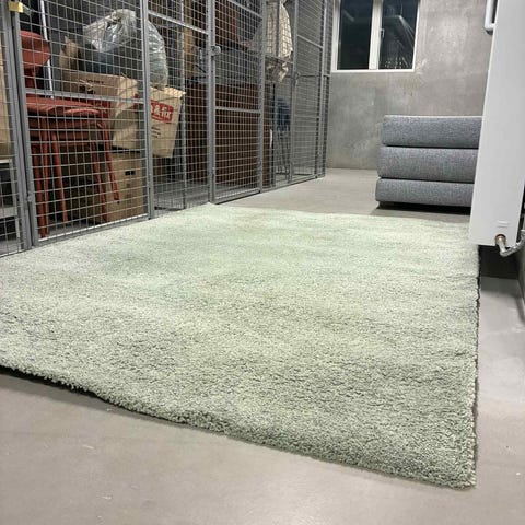 Tæppet er i den fineste blå farve og fejler ingenting. Det kunne måske have godt af en hurtig tur med en tæpperenser for at få overfladen til fremstå helt frisk igen.