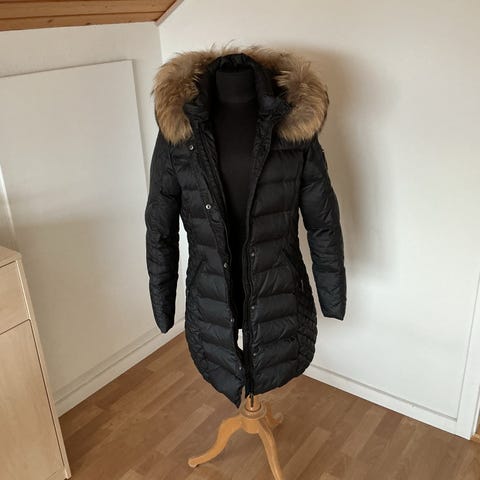 Ny flot dunjakke ( brugt 2 gange) fra Rockandblue slimfit med racoon aftagelig pelskrave og alm krave. Begge separat aftagelig. Måler 63 cm i længden fra armhule til nederst kant.Nypris ca. 2300 kr.