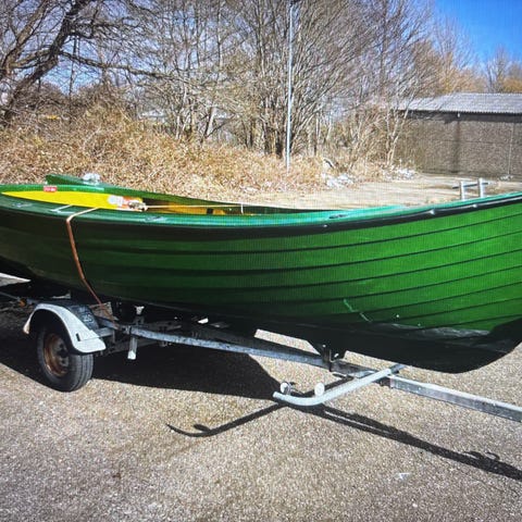 Har denne fine jolle til 6 personer doppel skrovet og jern skinde i bunden så nem til og sit i ved stran og andet stedet og ny træ blader er skort og skal bar skrues fast og så lidt maling så har man en lækker både byd gerne skam bud svares ik på kan kontakte på 41122676