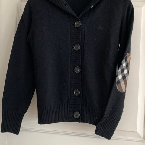 Burberry Cardigan i sort farve, størrelse M til kvinder. Fremstillet i bomuld Cardiganen har knaplukning og to forlommer.