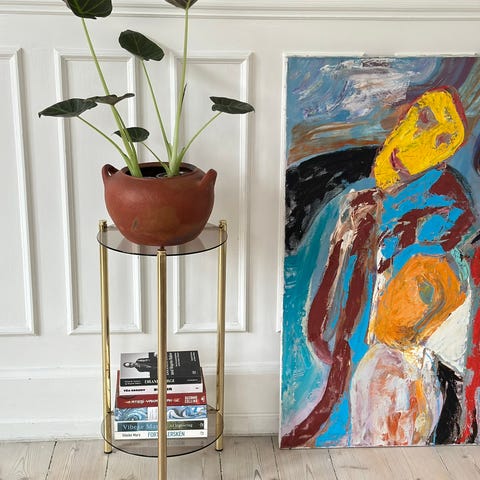 Messing plantebord / sidebord med røgfarvede glasplade