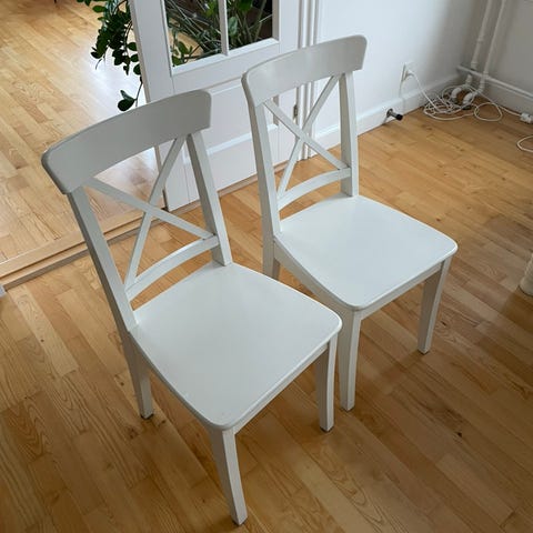 4 stk hvide stole andet mærke sælges helst samlet 200kr for alle 4