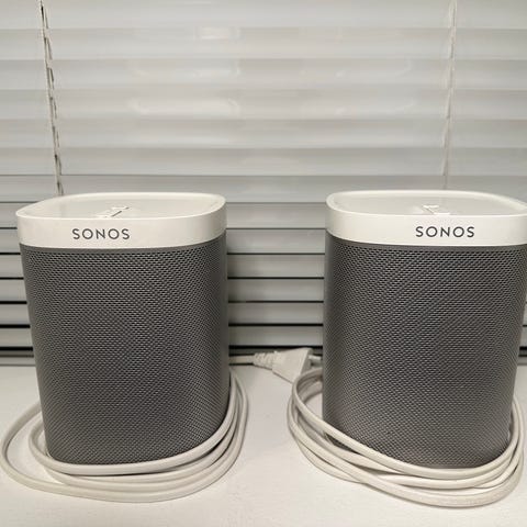 Meget fine Sonos Play:1. Står helt uden ridser eller skrammer. Virker de skal. Sælges samlet for 1000 kr. Sender ikke