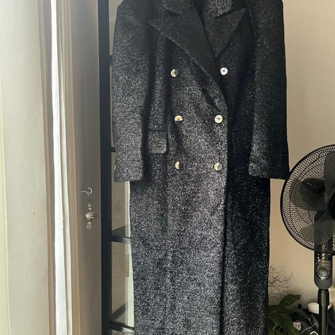 STELLA NOVA Frakke i beige farve, størrelse S, lavet af bomuld 80 procent og uld 20 procent. Designet til kvinder med dobbeltradede knapper og lommer. Materialet har en struktureret overflade, og ærmerne har et oplæg. Stor lækker krave, lommer i siden og fint læg på bagsiden. Mange fine detaljer.