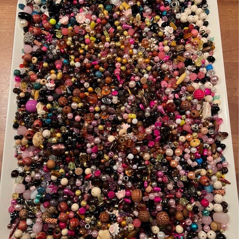 Perler til festkjoler, danse og brudekjoler. Mange farver og størrelser. ca. 10 kg. ialt.