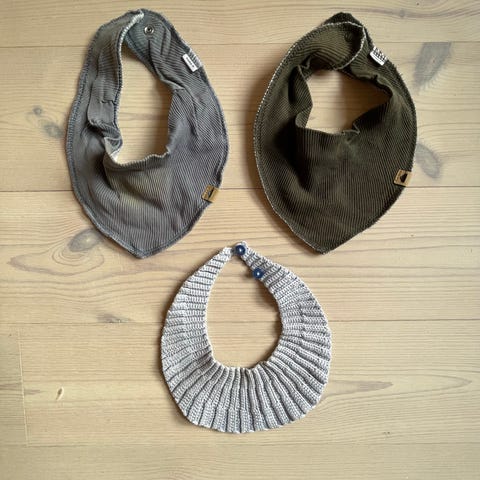 Savlen går IKKE igennem hagesmækken 🥳 Prisen er for alle 8 stk.Den hvide har lidt misfarvning.