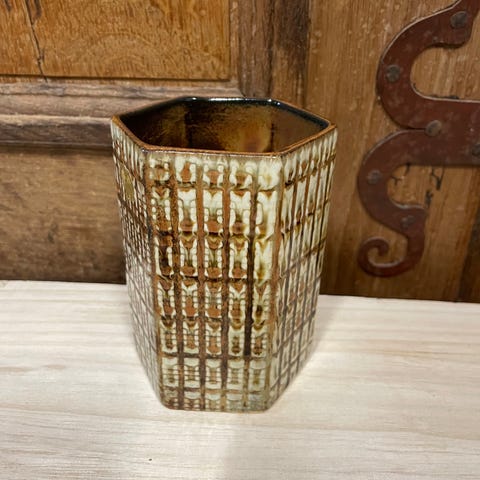 Søholm ældre rillet vase 24,5 cm høj - ingen skår - beige/brun