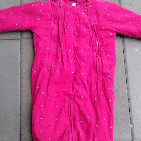 Hauck bærepose i beige farve med polstret indre foret med mønster af prikker i forskellige farver. Designet til komfort og støtte ved bæring af spædbørn.