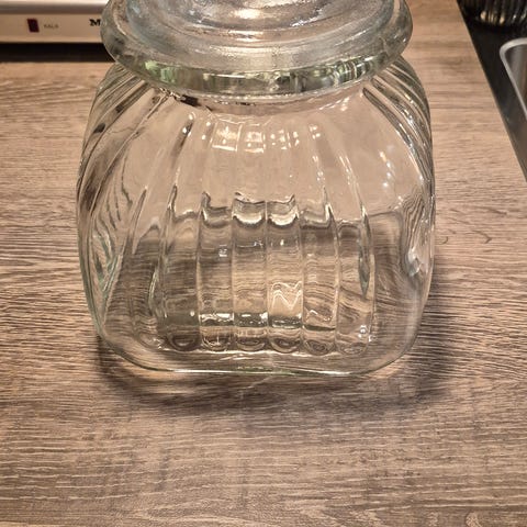 Glasæske, Lågkrukke. Smuk til smykker mm. Helt intakt - købt i Frankrig. Ligner krystal ved ikke om det er. Flot til smykkegaven! Mål længde 7 bredde 7 højde 4.