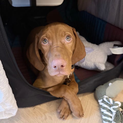 Han er en skøn Weimaranerhvalp på snart 7 måneder. Han er super! lærenem og glad for opgaver og er begejstret for både mennesker og andre hunde.