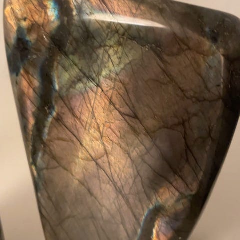 Stenen har en mælkehvid til let transparent opalkrop, der giver dybde og flot kontrast til farverne. Et særligt flot eksemplar i sin størrelse, velegnet til samlere, smykkefremstilling eller videre slibning.
