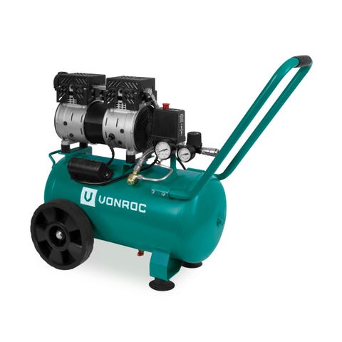 Meget fin lille kompressor til indendørs brug, den er lydløs (ca. 50-60 dB). Du kan tilslutte den forskellige Proxxon-værktøjer, der drives af luftkompressorer. Den leveres med en slange.