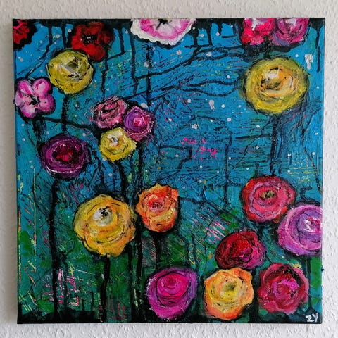 Akrylmaleri, AMB, motiv: Blomster/Have