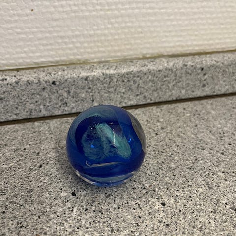 Glaskunst med en indkapslet blomst i klar glas.