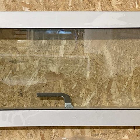 Tophængt træ/alu vindue med 2 lags termoglas og udluftningsventil.