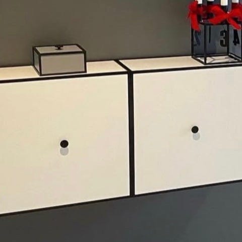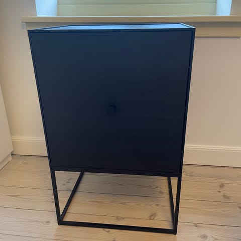 2 skabe af modellen Frame42 fra Audo Copenhagen (tidligere by Lassen). Den ene med hylde. Fremstår begge pæne, dog den ene med lidt rester fra selvklæbende tape, som fremgår af foto. Ej forsøgt fjernet.
