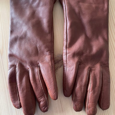 Lammeskindshandsker fra Rhanders. Str. 7. Brugt få gange som udelukkende kørehandsker. Fejler intet