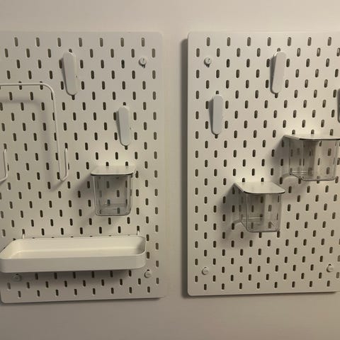 Kurvene kan bruges til diverse opbevaring og klemmerne kan bruge til ophæng af fx billeder. Både kurve og klemmer kan placeres rundt på hele tavlen.