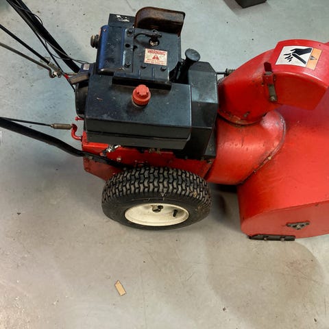Texas snefreser med gult og sort design. Maskinen har to håndtag for styring og kontrol, bred sneskæringsmekanisme foran, og motor plasseret over hjulene for fremdrift. Egnet til snerydding på indkørsler og gangstier