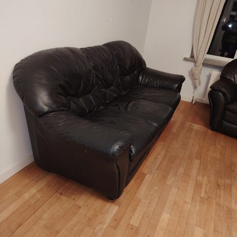 2-personers sort lædersofa. Intet slid.