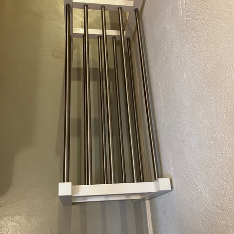 Robust skohylde med 2 hylder i børstet stål. Som ny.