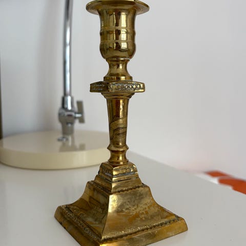 Herlig gammel 3 armet messing lysestage, højde 27 cm bredde 26 cm & vægt 1.1 kg. Lille bule ved højre manchet ( se foto).