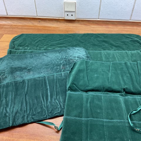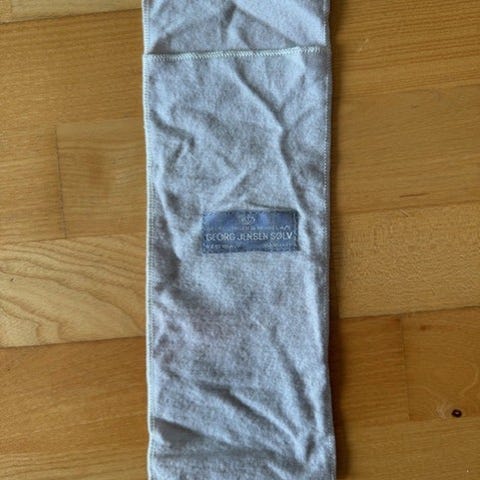 Poserne er beregnet til opbevaring af sølv bestik. De er lavet af blødt sort stof med Georg Jensen logo påtrykt.