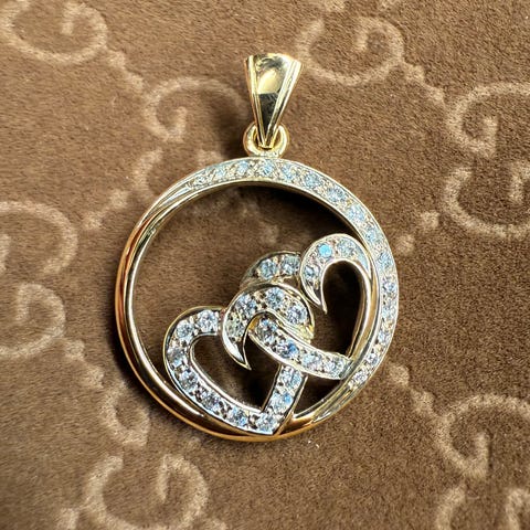 Smukkeste vedhæng til din halskæde med freds- / peace tegn i 18 kt guld med 0,57 ct TW-VS2 diamanter. 54 ialt! Brugt meget lidt.