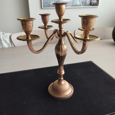 5 armet messing lysestage, Vintage - virkelig dekorativ. Længde 55,5. Højde det højeste sted ca 17.