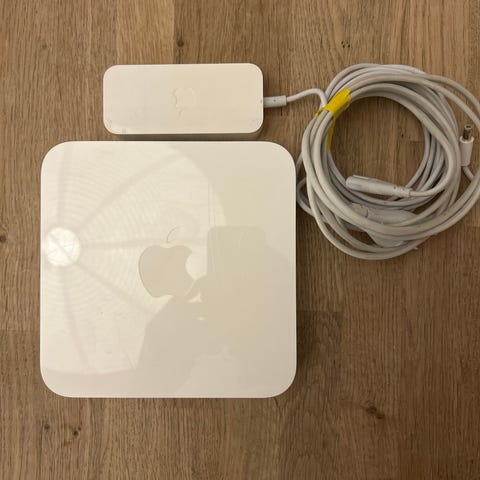 Apple AirPort Extreme Base Station type A1408 (router) med flere Ethernet-porte.