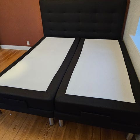 Udgøres af 2 stk 90x200 senge som holdes sammen, og en sengegavl inkl. Galvbeslag.