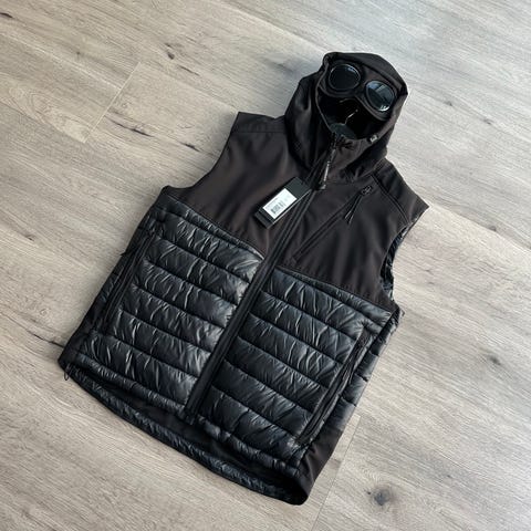 H&M Sort Vest til herre i størrelse M. Fremstillet i polyester materiale. Designet som en udendørs vest med polstret fyld for ekstra varme og komfort.