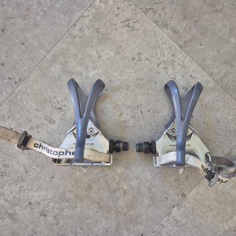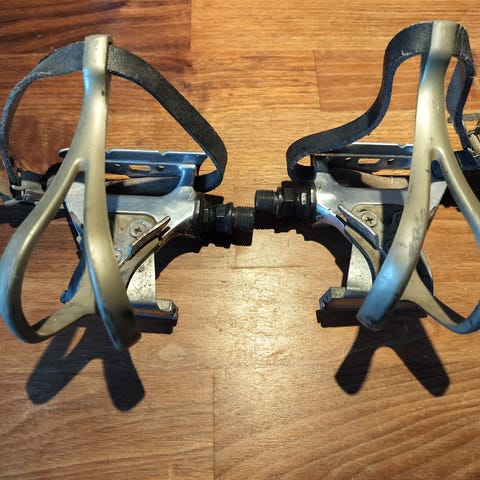 Sæt klassiske Shimano 105 PD-1055 racercykelpedaler sælges. Produceret i Japan. Pedalerne stammer fra den ældre Shimano 105-serie og er oplagte til vintage racercykler eller klassiske opbygninger.