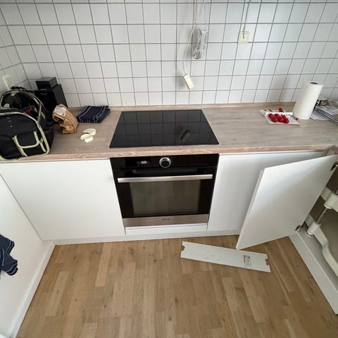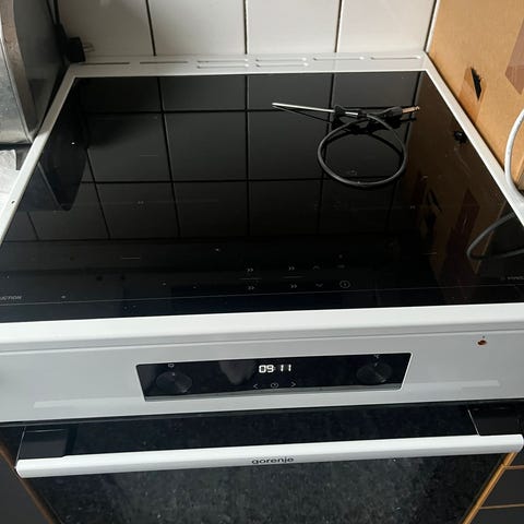 Vi sælger en fritstående elektrisk ovn med induktionskogeplade på grund af køkkenrenovering. Vi købte den for kun et år siden. Den har stadig et års garanti tilbage, og den kostede os 8000 kroner. Vi sælger den for 5000 kroner. Masse bred 600 hoj 900 dyb 600
