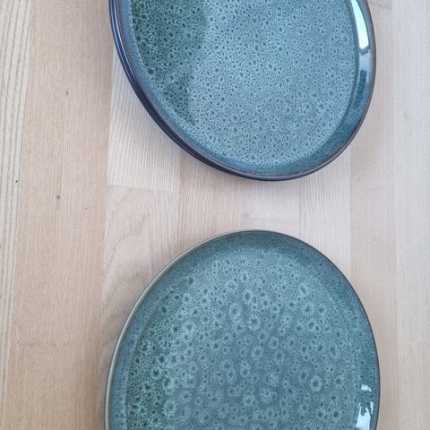 6 x glas tallerkener i blå fra bitz, de måler 18 cm