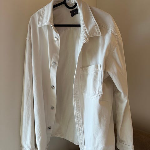 H&M Jakke i hvid farve, størrelse S. Fremstillet i uldmateriale. Designet til mænd som en yderbeklædning.