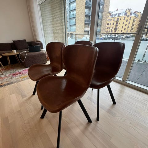 4 cognacfarvede spisebordsstole