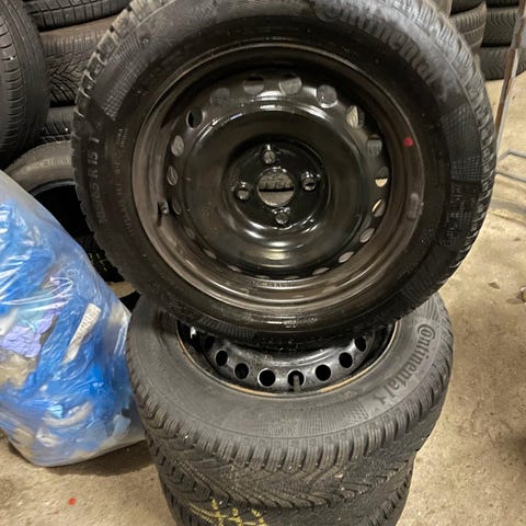 Michelin Alpin 6 vinterdæk, på originale Kia Rio fælger. Dækkene er afbalanceret.