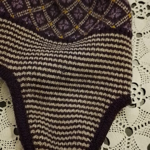 Hatten er brun og lavet af pels bl.a. sæl. Dejlig varmt i disse dage, fremstillet på Grønland.