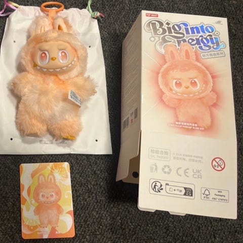 Min datter sælger en af sine uægte Labubu som dog ligner den ægte virkelig meget - den er i rigtig god kvalitet og markant billigere end de ægte som koster 5-6 gange mere.