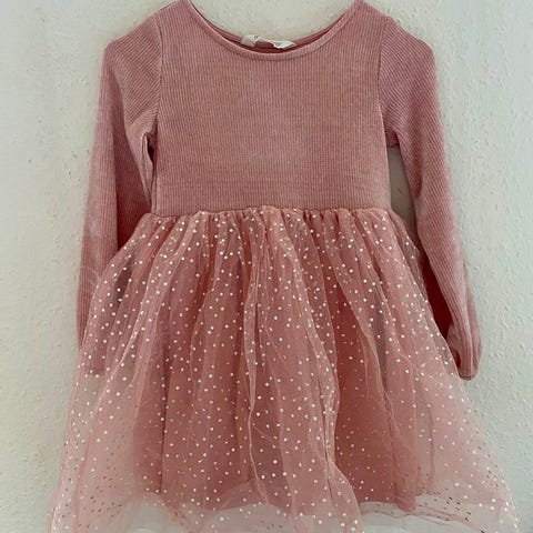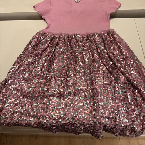 Lyserød tyl og paillet kjole str 122-128. Næsten ikke brugt