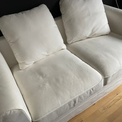 The sofa is used but in good condition and comfortable.