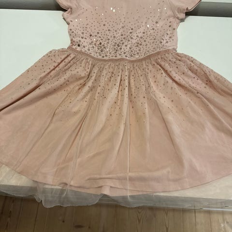 Lyserød paillet kjole str 122-128. Brugt meget lidt