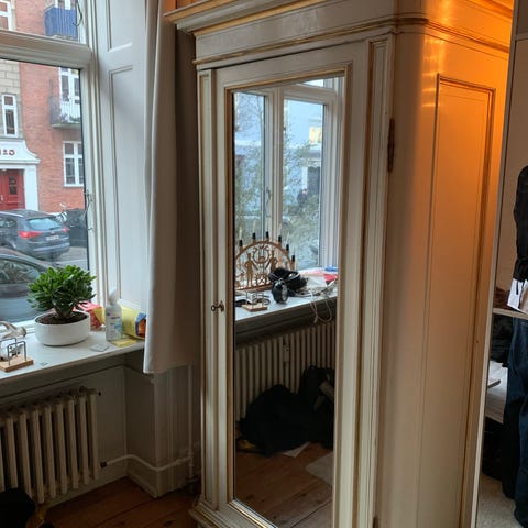 Super dejligt skab med to låger som er monteret med kobberspejl der let kan afmonteres hvis det ønskes.