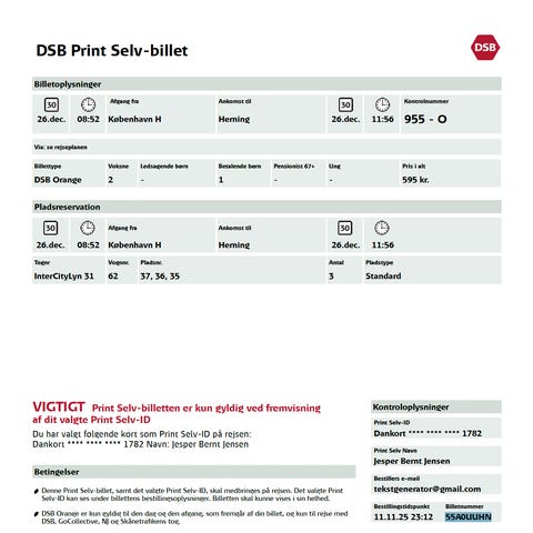 10/1 København - Århus med pladsbillet for 2 voksne, Byd gerne