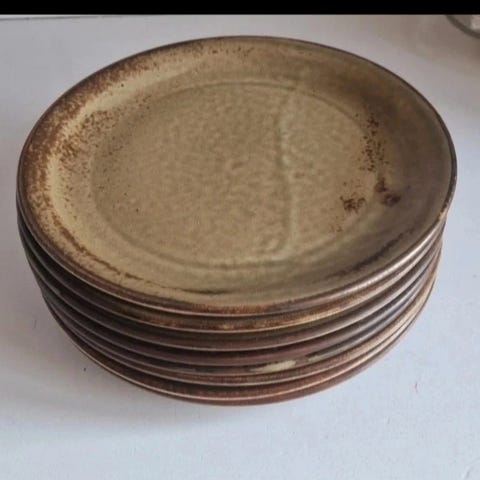 Michael Andersen stentøj tallerkener i sæt af 4 stk. Tallerkenerne har en brunlig farve med en tekstureret overflade. Velegnet til daglig brug i køkkenet.
