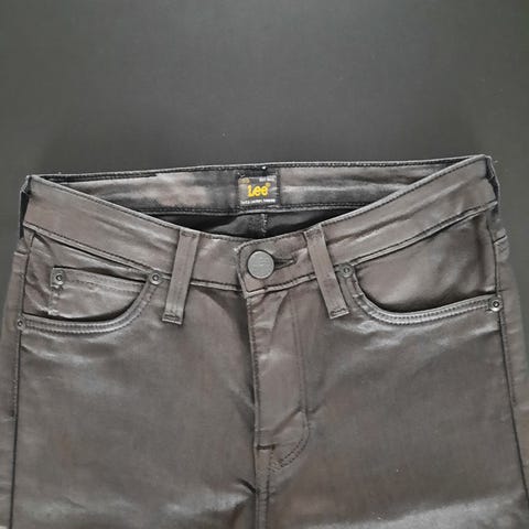 Brune Lee Jegging dame bukser med smalle ben. Stoffet har en skind lignende overflade.