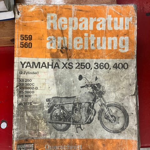Yamaha xs650B original reperationshåndbog (Kopi) og hæfte med billeder og reservedelsnumre.